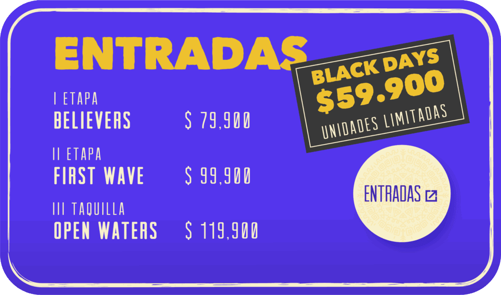 Abrimos puertas desde las 12:00 p.m., y la fiesta va hasta la medianoche. Prepárate para un día completo de buena música, cocteles tropicales y playa.
